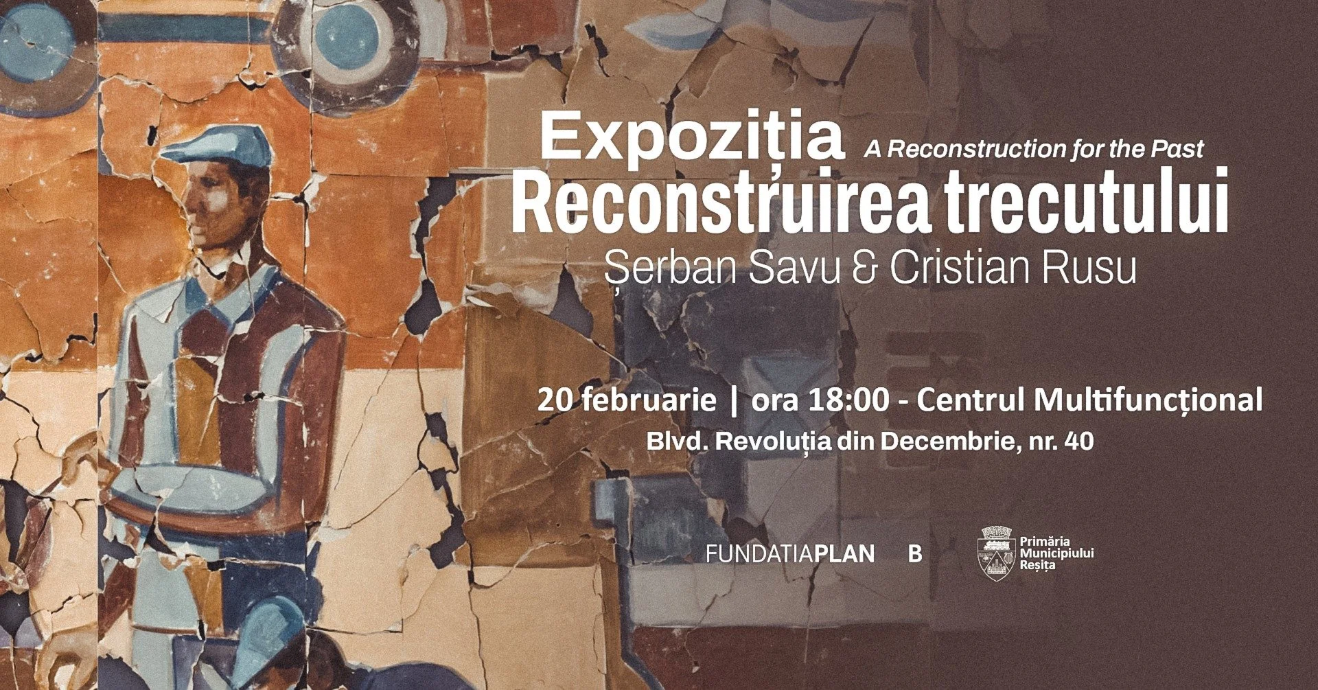 Centrul Multifuncțional din Reșița se deschide publicului larg, în premieră, cu expoziția Reconstituirea trecutului, realizată în parteneriat cu Fundația Plan B. Noua locație prevăzută cu mai multe săli și un amfiteatru în aer liber, are în prezent o destinație experimentală, găzduind în prima fază artǎ. Prin urmare, vineri 20 februarie, de la ora 18:00, publicul este invitat pe Bld. Revoluția din Decembrie, nr.40 (Centrul Multifuncțional Reșița) să vadă o lucrare monumentală (900 × 250 cm), creată de Șerban Savu și recompusă sub forma unui mozaic de către Cristian Rusu.