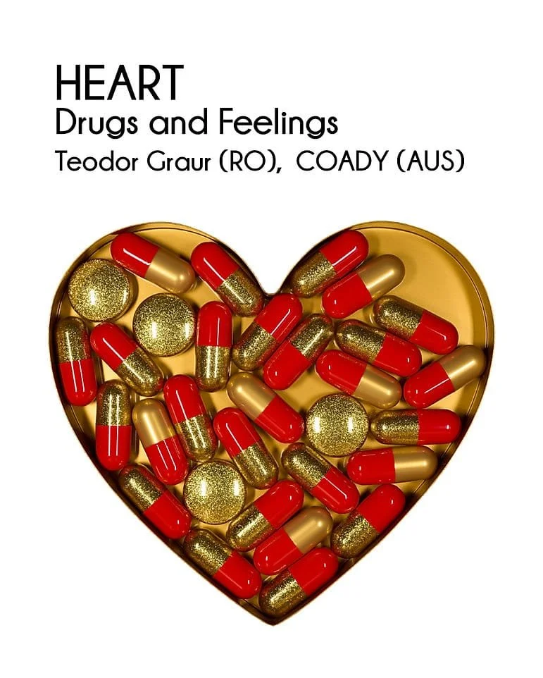 Galeria Sandwich ( HEART - Drugs & Feelings in perioada 31 mai – 28 iunie 2025 la Pavilionul ISHO, Take Ionescu 50-52), organizează o expoziție duo între Teodor Graur (RO) și COADY (AUS), care reunește două perspective artistice complementare într-un discurs vizual despre vitalitate, corporalitate, relația dintre abstract și concret, dintre remediu și emoție, dintre design și simbol.