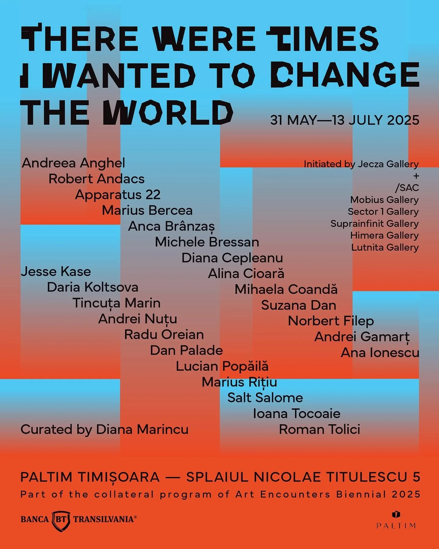 Mai mult, Jecza Gallery inițiază în colaborare cu o suită de galerii respectiv SAC, Mobius, Sector 1, Suprainfinit, Himera și Lutnița - THERE WERE TIMES I WANTED TO CHANGE THE WORLD (curatoriata de Diana Marincu in perioada 31 mai – 13 iulie 2025 la PALTIM Timișoara – Splaiul Nicolae Titulescu 5).